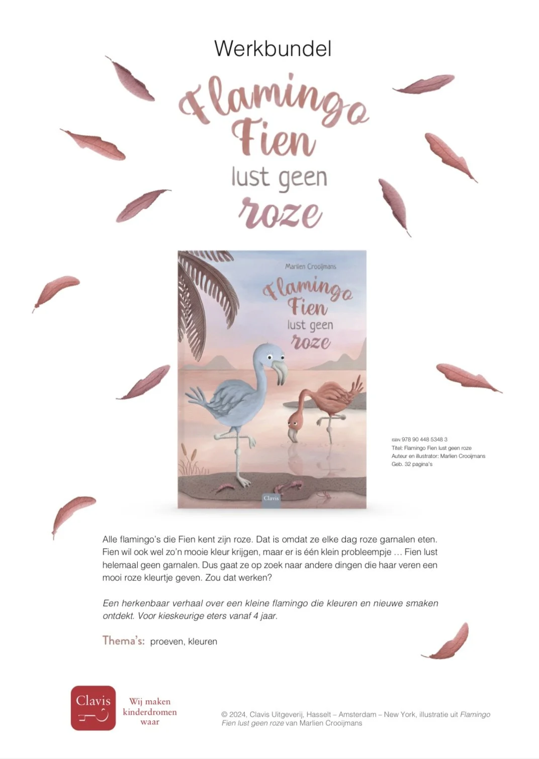 De activiteitenbundel en kleurplaat voor Flamingo Fien lust geen roze is nog steeds beschikbaar.